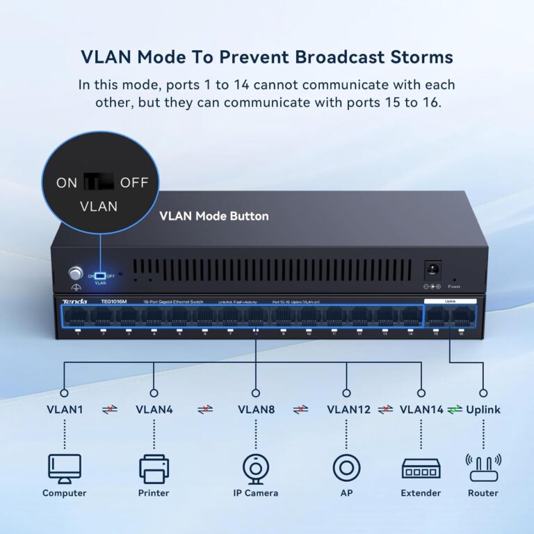 Switch Tenda TEG1016M 16 Puertos Gigabit 10/100/1000 Plug & Play Metálico