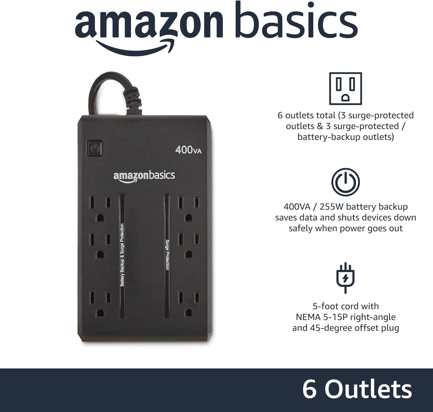 El Amazon Basics UPS de Reserva 400VA 255W es una solución compacta y eficiente para proteger tus dispositivos electrónicos contra cortes de energía y sobretensiones. Diseñado especialmente para redes domésticas y dispositivos IoT, ofrece energía confiable en cortes cortos y tiempo suficiente para un apagado seguro en interrupciones prolongadas. Con 6 tomacorrientes, 3 de respaldo de batería y 3 protegidos contra sobretensiones, garantiza la seguridad de tus equipos esenciales. Su diseño compacto y cable de 5 pies lo hacen perfecto para cualquier hogar u oficina.