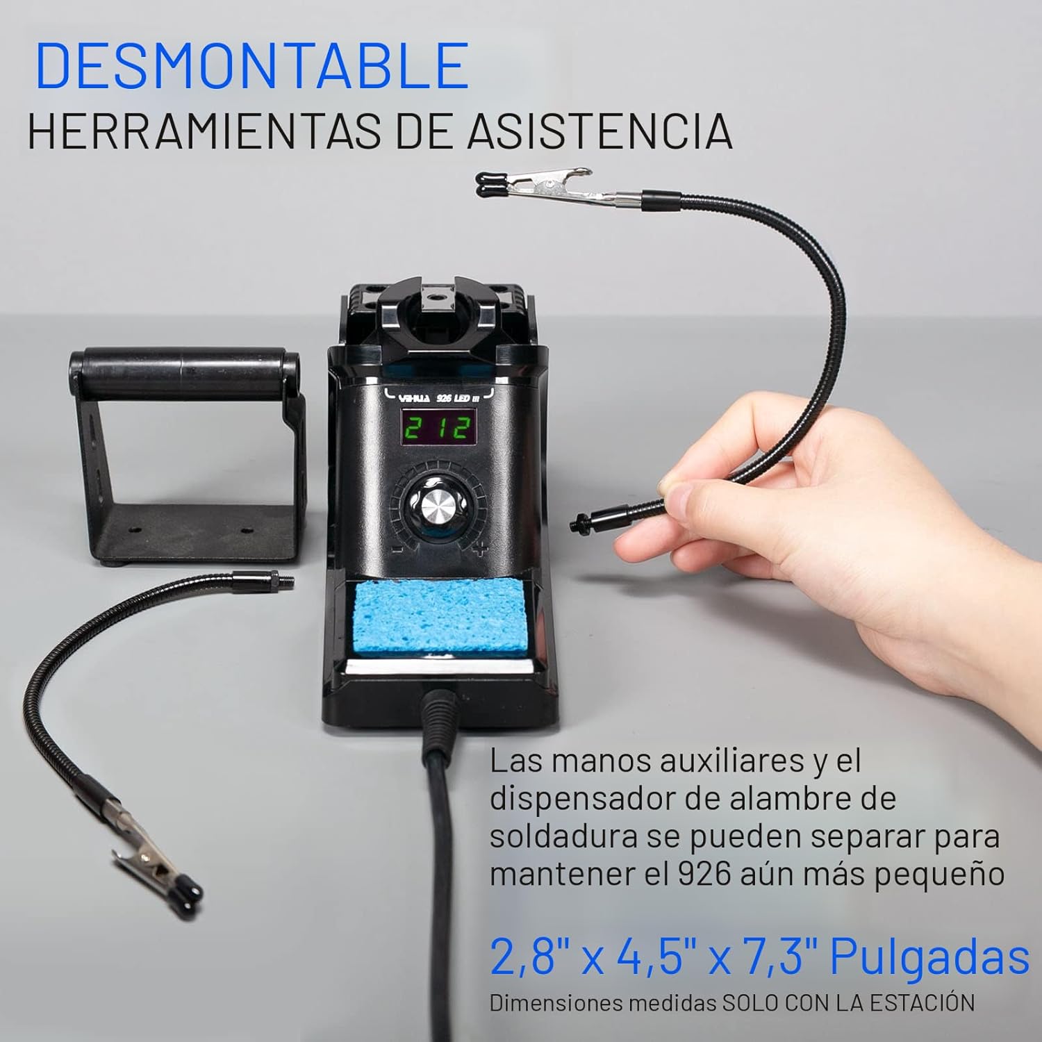 - 🌟 Accesorios incluidos: 2 manos de ayuda, succionador de soldadura, pinzas de acero inoxidable, esponja de limpieza y dispensador de alambre.