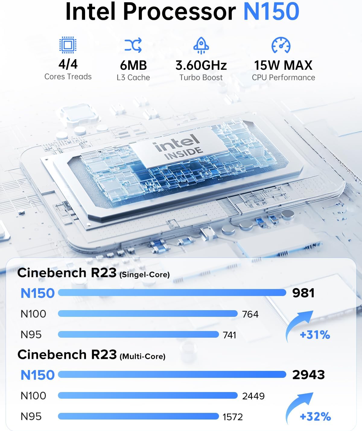 💻 Eleva tu espacio de trabajo con la Mini PC ACEMAG Vista Mini V1, impulsada por el poderoso procesador Twin Lake N150 2025 (4 núcleos/4 hilos, hasta 3.6 GHz), que supera a generaciones anteriores como el N100 y N95 con un rendimiento superior y eficiencia energética de tan solo 15W. Ideal para trabajo de oficina, estudio, entretenimiento y uso diario con total fluidez.